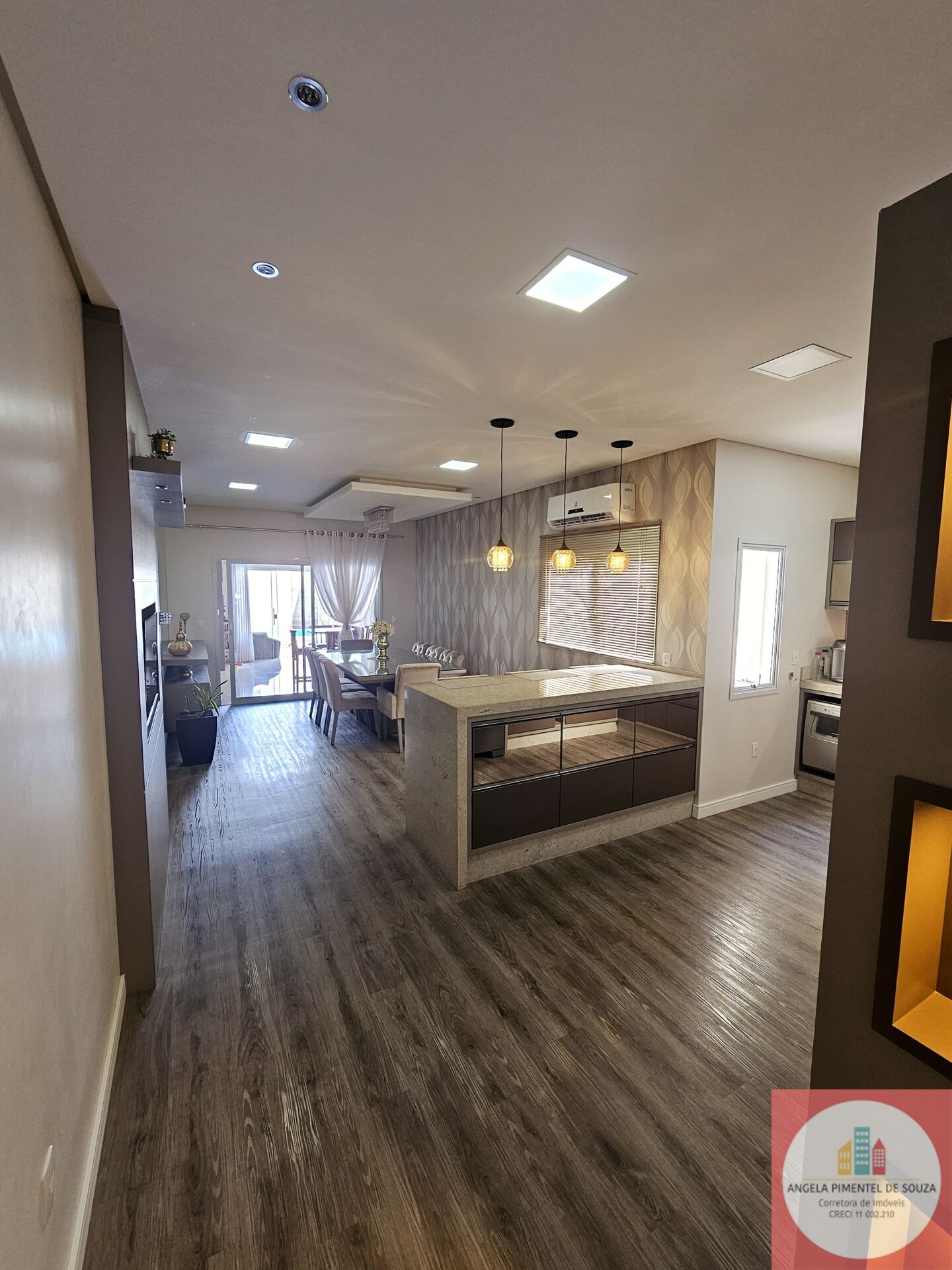 A casa também possui móveis planejados em todos os ambientes, ar-condicionado em todos os cômodos, e um amplo terreno com piscina, jardim e área de lazer integrada. Com 3 quartos, incluindo uma suíte máster com closet, e uma garagem para até 3 carros, é um espaço perfeito para quem busca conforto e praticidade.