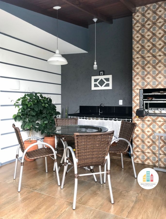 1) A casa tem 4 dormitórios com ar condicionado, sendo uma suíte. 2 sala de estar, 1 banheiro social, 1 lavabo, cozinha conjugada com sala de jantar, 2 vagas de garagem coberta, 1 área na frente e 1 área de lazer nos fundos com piscina, churrasqueira e forno de pizza. Praticamente todos os móveis permanecem. Sai eletrodomésticos e alguns móveis soltos.